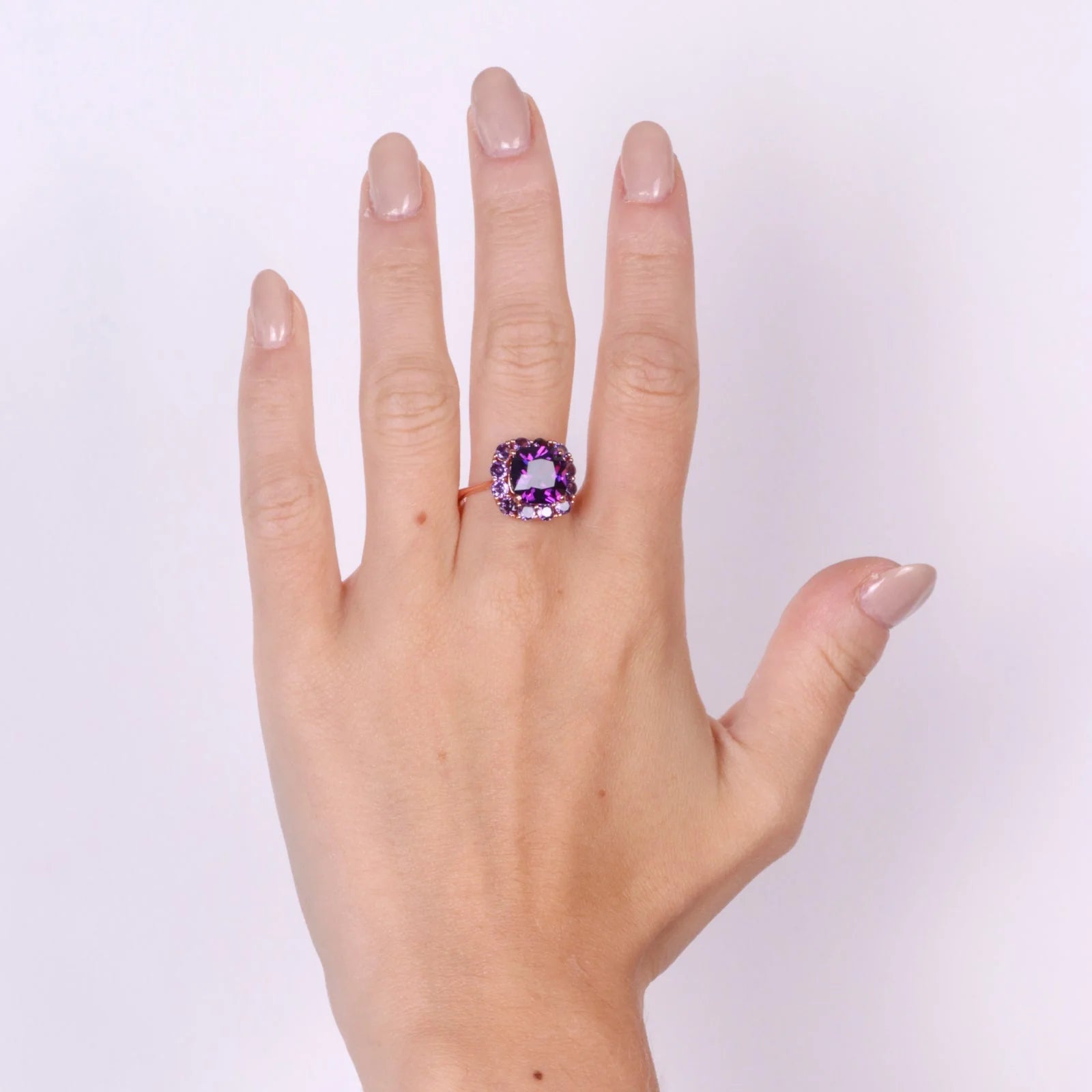 Anello stile antico con Zircone Viola Finitura Placcato Oro rosé Pietra Cubic Zirconi Misura 16