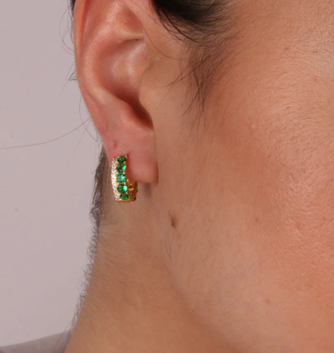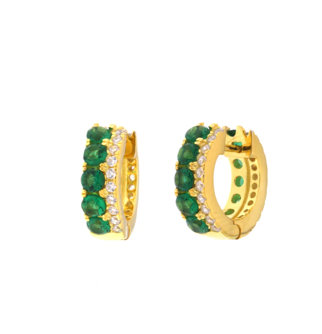 BY SIMON Tipo Orecchini in Argento 925, cerchietti con Zirconi bianchi e verdi Finitura Oro giallo Misura cm 1,5 Chiusura Scatto Made in Italy