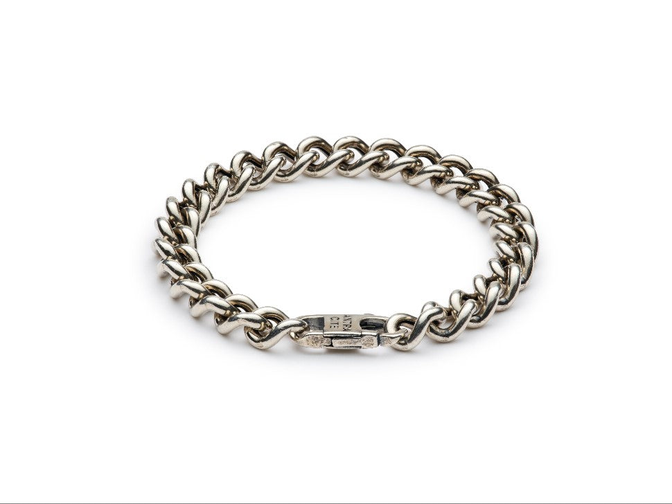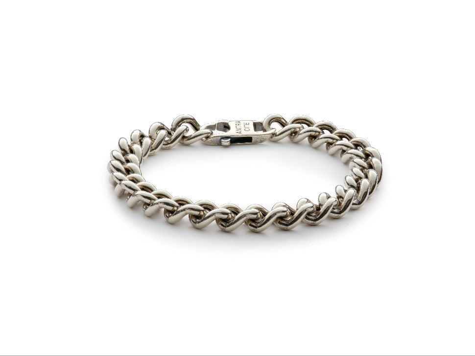 Bracciale realizzato catena grumetta tonda in Argento 925 ad effetto invecchiato e moschettone logato Antracite.