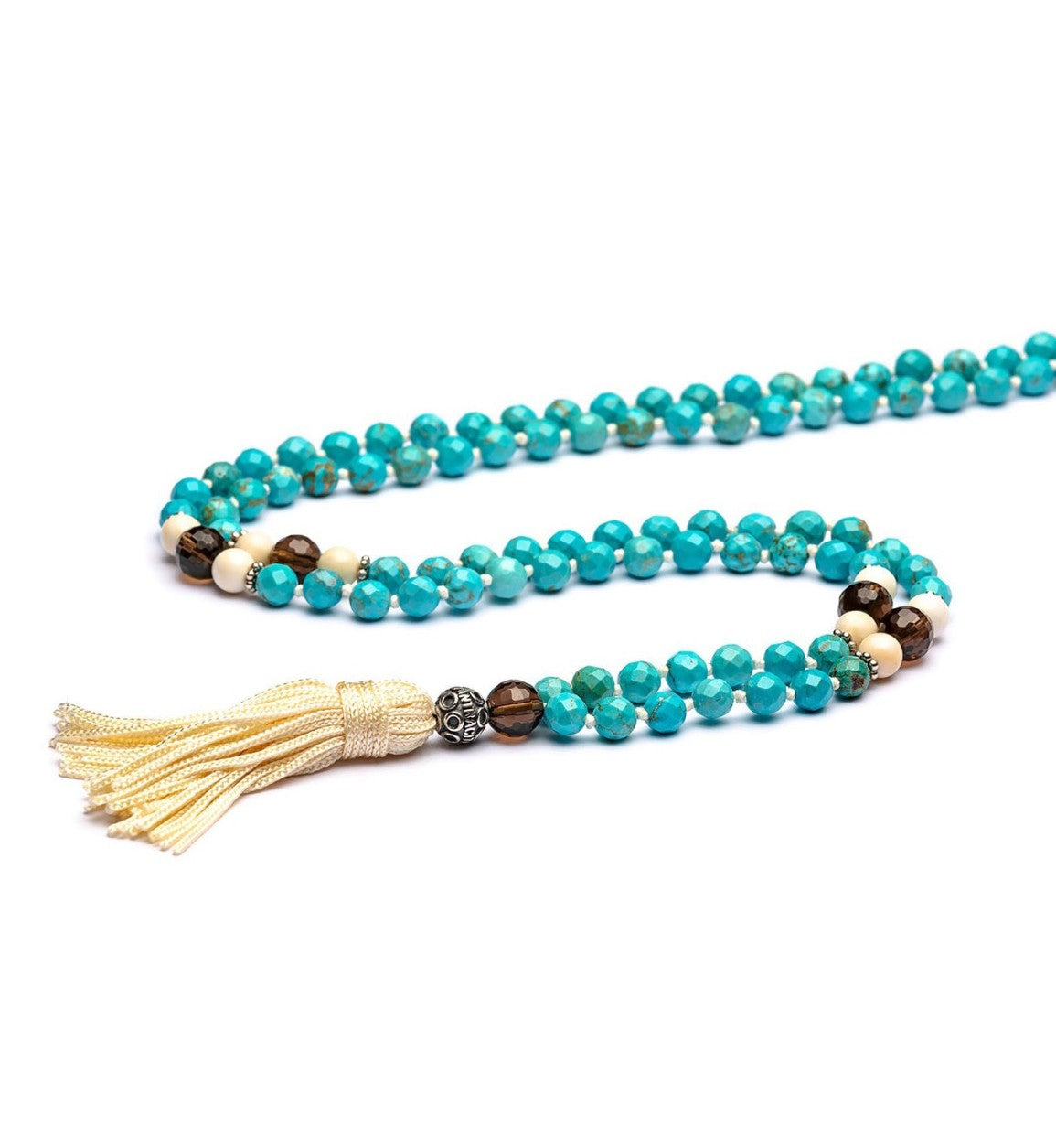 Mala tibetano con 108 pietre dure naturali da 6 e 8 mm e argento invecchiato 925.