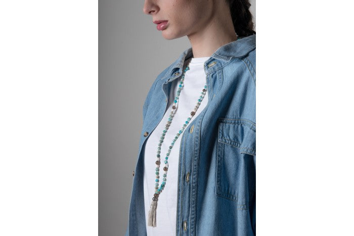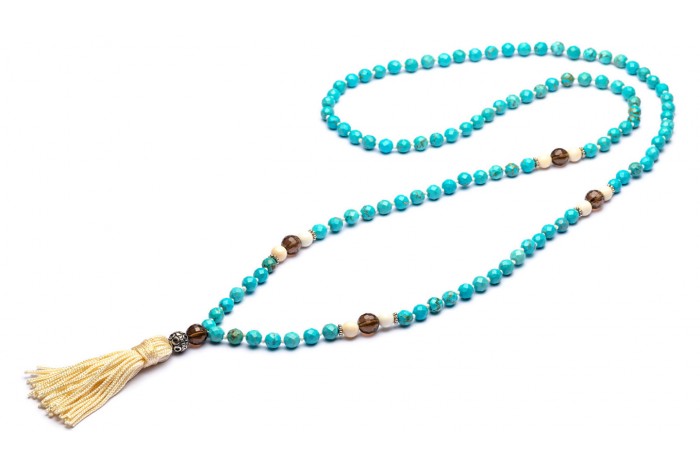 Pietre dure naturali: Madreperla, Quarzo Fumè, Howlite Turchese - Argento Invecchiato 925%