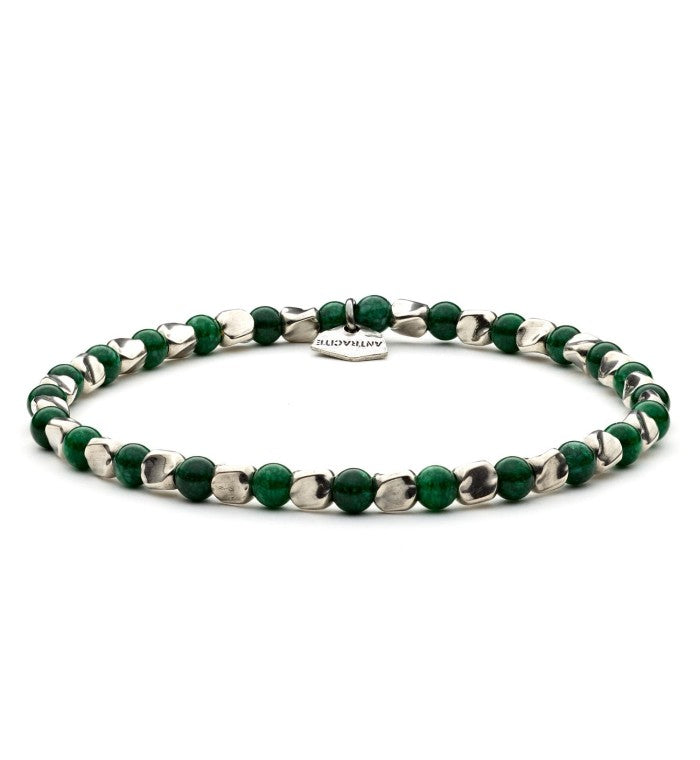 Nei bracciali Mono le pietre da 4 mm si susseguono creando un perfetto ordine cromatico, reso originale unicamente dalle sfumature naturali della pietra. Ogni sfera è intervallata da sottili elementi in Argento 925% il tutto impreziosito dal marchio Antracite impresso sulla targhetta esagonale