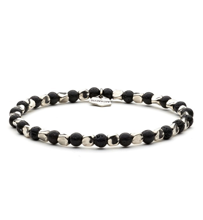 Nei bracciali Mono le pietre da 4 mm si susseguono creando un perfetto ordine cromatico, reso originale unicamente dalle sfumature naturali della pietra. Ogni sfera è intervallata da sottili elementi in Argento 925% il tutto impreziosito dal marchio Antracite impresso sulla targhetta esagonale
