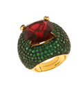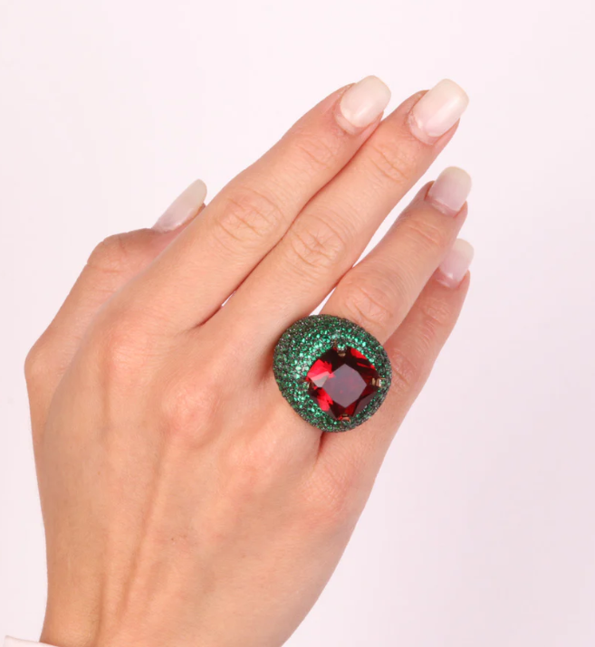 BY SIMON Tipo Anello in Argento 925 con pavè di Zirconi verdi e bianchi e grande Zircone rosso Rubino centrale Finitura Bicolore Pietra Cubic Zirconi Misura Regolabile Made in Italy
