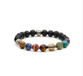 Pietre: Occhio di Tigre Marrone, Agata Nera, Agata Azzurra, Turchese Africano, Labradorite Bianca, Diaspro Rosso, Agata rosa, Diaspro giallo - Argento Invecchiato 925%