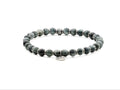 Bracciale in Argento invecchiato 925 e pietre dure naturali, realizzato con un filo elastico in silicone trasparente molto resistente Made in USA. Dimensione Pietre: 6mm Pietre Occhio d'Aquila Lunghezza cm 20