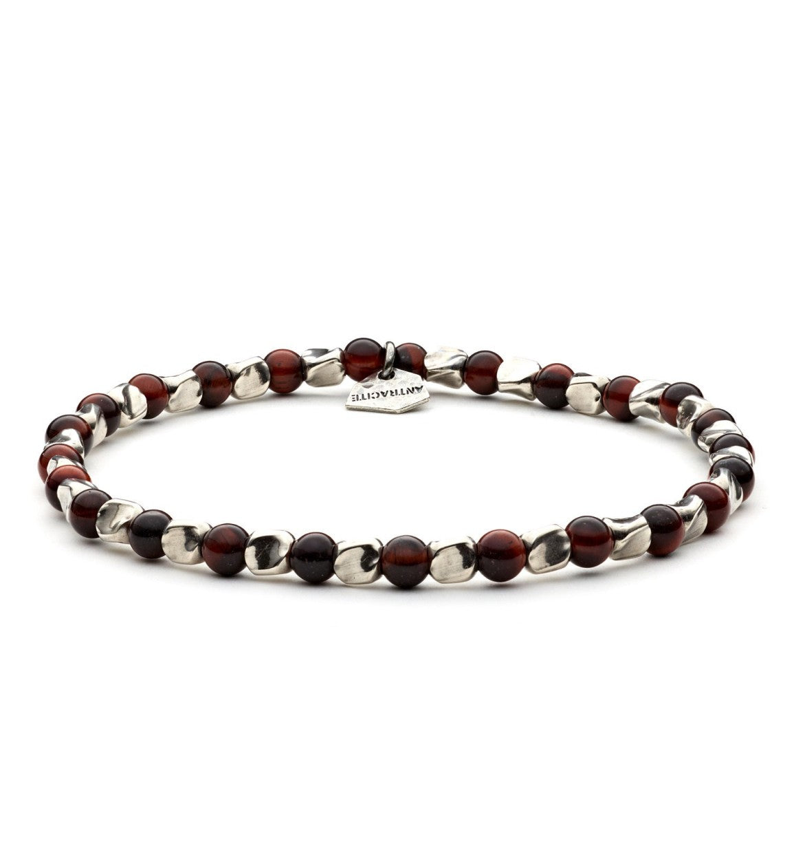 Nei bracciali Mono le pietre da 6 mm si susseguono creando un perfetto ordine cromatico, reso originale unicamente dalle sfumature naturali della pietra. Ogni sfera è intervallata da sottili elementi in Argento 925% il tutto impreziosito dal marchio Antracite impresso sulla targhetta esagonale