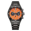 Tipo di movimento Al quarzo Citizen Tipo di vetro Minerale Funzioni Cronografo Tipo di quadrante Analogico, Cifre, Indici e Lancette luminescenti Colore quadrante Arancione Materiale della cassa Acciaio, finitura Grey Tipo di cinturino Bracciale Acciaio, chiusura doppio pulsante, finitura Grey