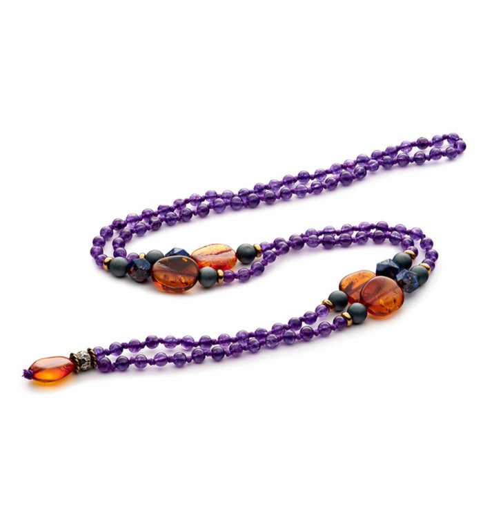 Pietre dure naturali: Ematite, Ametista, Lapislazzuli, Ambra - Argento Dorato Invecchiato 925%